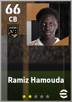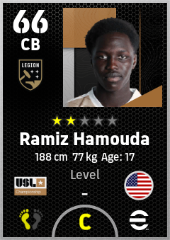 . Ramiz Hamouda is a Center Back footballer from United States who plays for Birmingham Legion Fc in eFootball 2026.