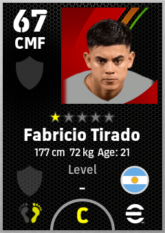 . Fabricio Tirado is a Center Midfielder footballer from Argentina who plays for Free in eFootball 2026.