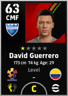. David Guerrero is a Center Midfielder footballer from Colombia who plays for Pasto Raa in eFootball 2026.