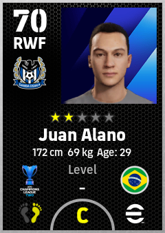 . Juan Alano is a Right Wing Forward footballer from Brazil who plays for Gamba Osaka in eFootball 2026.