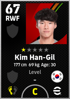 . Kim Han-Gil is a Right Wing Forward footballer from Korea Republic who plays for Free in eFootball 2026.