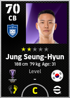 . Jung Seung-Hyun is a Center Back footballer from Korea Republic who plays for Ulsan Hd Fc in eFootball 2026.