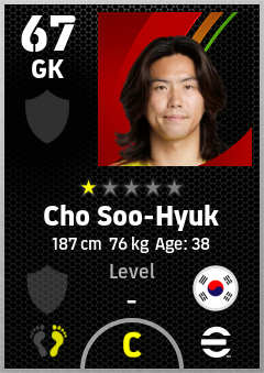 . Cho Soo-Hyuk is a Goalkeeper footballer from Korea Republic who plays for Free in eFootball 2026.