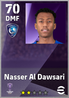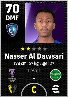 . Nasser Al Dawsari is a Defensive Midfielder footballer from Saudi Arabia who plays for Al Hilal Sfc in eFootball 2026.