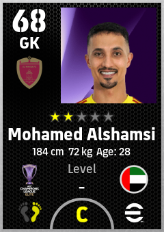 . Mohamed Alshamsi is a Goalkeeper footballer from United Arab Emirates who plays for Al Wahda Fc in eFootball 2026.