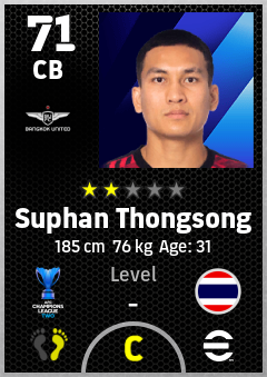 . Suphan Thongsong is a Center Back footballer from Thailand who plays for True Bangkok United Fc in eFootball 2026.