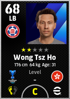 . Wong Tsz Ho is a Left Back footballer from Hong Kong, China who plays for Eastern Sc in eFootball 2026.