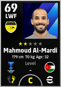 . Mahmoud Al-Mardi is a Left Wing Forward footballer from Jordan who plays for Al Hussein Sc in eFootball 2026.