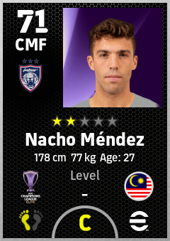 . Nacho Méndez is a Center Midfielder footballer from Malaysia who plays for Johor Darul Ta'zim Fc in eFootball 2026.