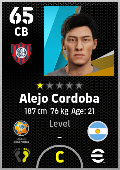 . Alejo Cordoba is a Center Back footballer from Argentina who plays for Almagro Ar in eFootball 2026.