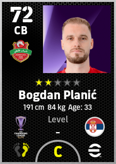 . Bogdan Planić is a Center Back footballer from Serbia who plays for Shabab Al Ahli Dubai Fc in eFootball 2026.