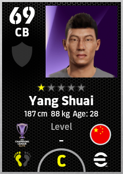 . Yang Shuai is a Center Back footballer from China Pr who plays for Chengdu Rongcheng Fc in eFootball 2026.