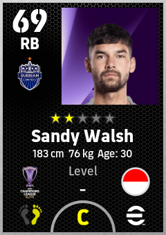 . Sandy Walsh is a Right Back footballer from Indonesia who plays for Buriram United F.c. in eFootball 2026.