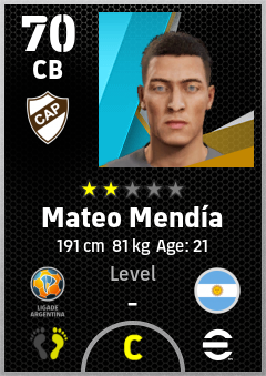 . Mateo Mendía is a Center Back footballer from Argentina who plays for Vicente López M in eFootball 2026.