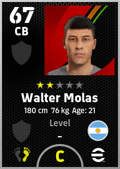 . Walter Molas is a Center Back footballer from Argentina who plays for Free in eFootball 2026.
