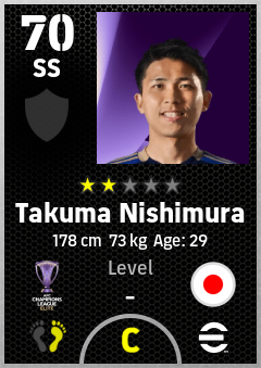 . Takuma Nishimura is a Second Striker footballer from Japan who plays for Fc Machida Zelvia in eFootball 2026.