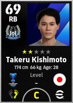 . Takeru Kishimoto is a Right Back footballer from Japan who plays for Gamba Osaka in eFootball 2026.