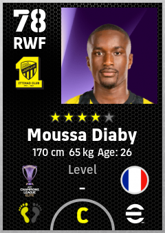 . Moussa Diaby is a Right Wing Forward footballer from France who plays for Al Ittihad Club in eFootball 2026.