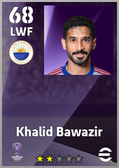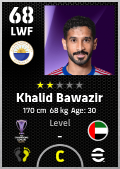 . Khalid Bawazir is a Left Wing Forward footballer from United Arab Emirates who plays for Sharjah Fc in eFootball 2026.