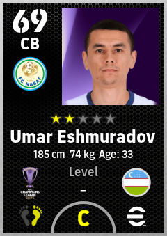 . Umar Eshmuradov is a Center Back footballer from Uzbekistan who plays for Fc Nasaf in eFootball 2026.