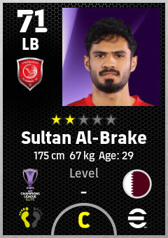 . Sultan Al-Brake is a Left Back footballer from Qatar who plays for Al Duhail Sc in eFootball 2026.