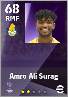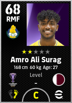. Amro Ali Surag is a Right Midfielder footballer from Qatar who plays for Al Gharafa Sc in eFootball 2026.