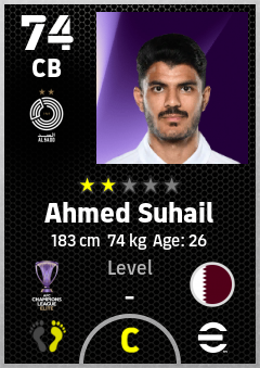 . Ahmed Suhail is a Center Back footballer from Qatar who plays for Al Sadd Sc in eFootball 2026.