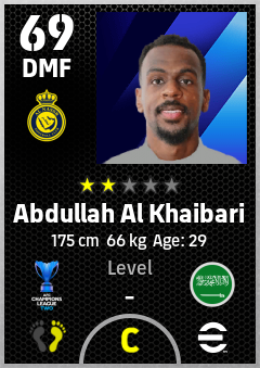 . Abdullah Al Khaibari is a Defensive Midfielder footballer from Saudi Arabia who plays for Al Nassr Fc in eFootball 2026.