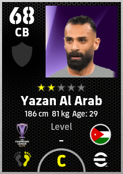 . Yazan Al Arab is a Center Back footballer from Jordan who plays for Fc Seoul in eFootball 2026.