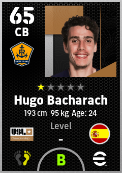 . Hugo Bacharach is a Center Back footballer from Spain who plays for Rhode Island Fc in eFootball 2026.
