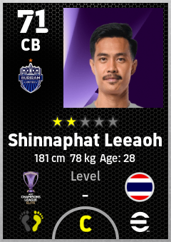 . Shinnaphat Leeaoh is a Center Back footballer from Thailand who plays for Buriram United F.c. in eFootball 2026.
