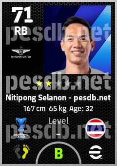 . Nitipong Selanon is a Right Back footballer from Thailand who plays for True Bangkok United Fc in eFootball 2026.