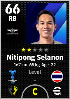 . Nitipong Selanon is a Right Back footballer from Thailand who plays for True Bangkok United Fc in eFootball 2026.