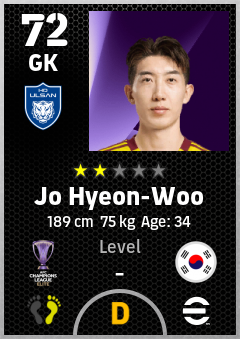 . Jo Hyeon-Woo is a Goalkeeper footballer from Korea Republic who plays for Ulsan Hd Fc in eFootball 2026.