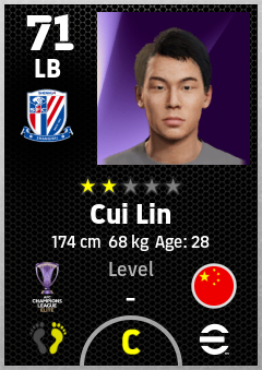 . Cui Lin is a Left Back footballer from China Pr who plays for Shanghai Shenhua Fc in eFootball 2026.