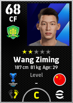 . Wang Ziming is a Center Forward footballer from China Pr who plays for Beijing Fc in eFootball 2026.