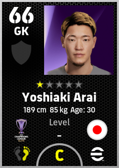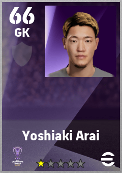 . Yoshiaki Arai is a Goalkeeper footballer from Japan who plays for Fc Machida Zelvia in eFootball 2026.