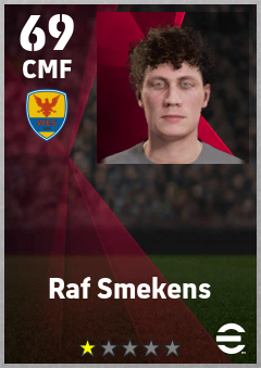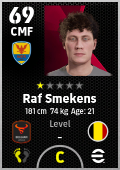 . Raf Smekens is a Center Midfielder footballer from Belgium who plays for Westerlo Gb in eFootball 2026.