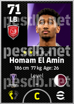 . Homam El Amin is a Left Back footballer from Qatar who plays for Al Duhail Sc in eFootball 2026.