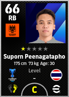. Suporn Peenagatapho is a Right Back footballer from Thailand who plays for Ratchaburi Fc in eFootball 2026.