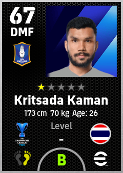 . Kritsada Kaman is a Defensive Midfielder footballer from Thailand who plays for Bg Pathum United Fc in eFootball 2026.