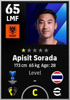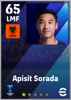. Apisit Sorada is a Left Midfielder footballer from Thailand who plays for Ratchaburi Fc in eFootball 2026.
