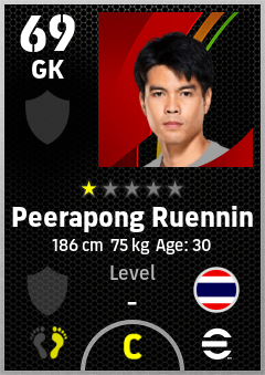 . Peerapong Ruennin is a Goalkeeper footballer from Thailand who plays for Free in eFootball 2026.