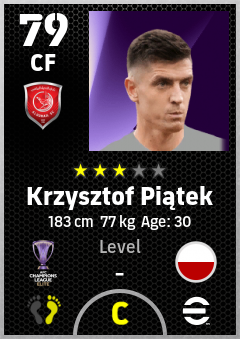 . Krzysztof Piątek is a Center Forward footballer from Poland who plays for Al Duhail Sc in eFootball 2026.