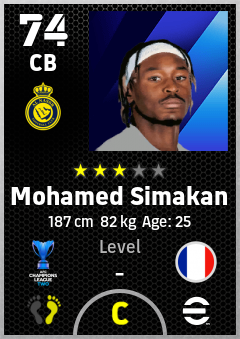 . Mohamed Simakan is a Center Back footballer from France who plays for Al Nassr Fc in eFootball 2026.