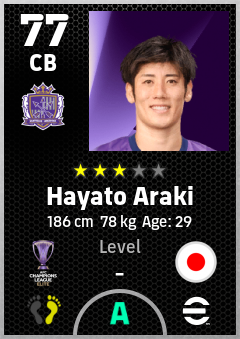 . Hayato Araki is a Center Back footballer from Japan who plays for Sanfrecce Hiroshima in eFootball 2026.