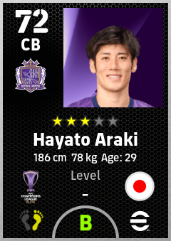 . Hayato Araki is a Center Back footballer from Japan who plays for Sanfrecce Hiroshima in eFootball 2026.