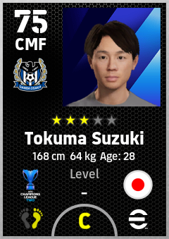. Tokuma Suzuki is a Center Midfielder footballer from Japan who plays for Gamba Osaka in eFootball 2026.