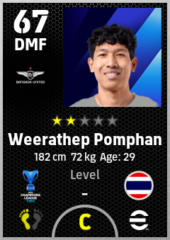 . Weerathep Pomphan is a Defensive Midfielder footballer from Thailand who plays for True Bangkok United Fc in eFootball 2026.