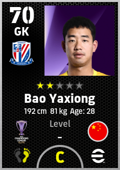 . Bao Yaxiong is a Goalkeeper footballer from China Pr who plays for Shanghai Shenhua Fc in eFootball 2026.